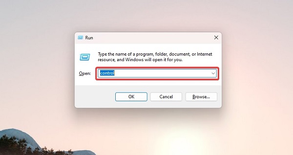 Nhấn Windows+ R, nhập điều khiển và nhấn Enter.