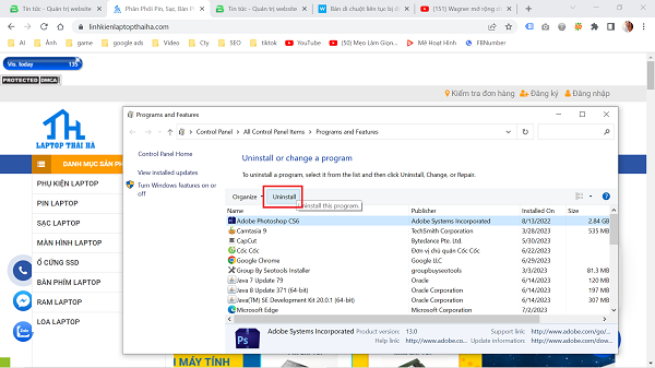2. Gỡ phần mềm vừa cài