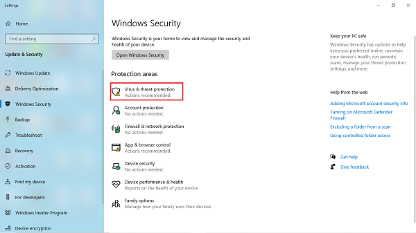 Bây giờ, hãy nhấp vào Virus & threat protection tại đây.