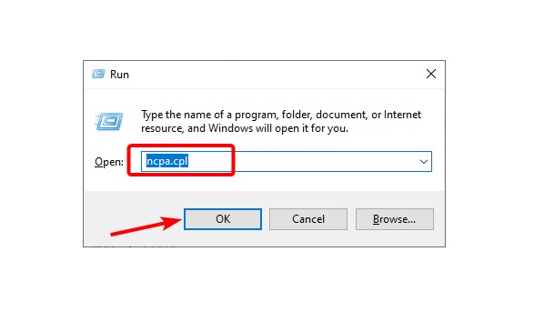 1. Nhấn Windowsphím + R, nhập ncpa.cpl và nhấp vào OK .