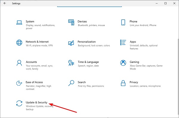 Nhấn Windowsphím + Ivà chọn tùy chọn Cập nhật & Bảo mật .