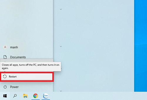 Khởi động lại máy tính laptop là cách dễ nhất mà bạn có thể thực hiện ngay lập tức khi xảy ra sự cố. Tuy nhiên, nếu sau đó laptop đã khởi động lại mà bạn vẫn gặp sự cố này, bạn nên chuyển sang các phương pháp khác thay vì tiếp tục cố ép máy khởi động lại.