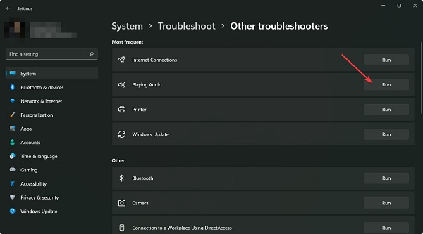 3. Nhấp vào nút Run ở mục Playing Audio.