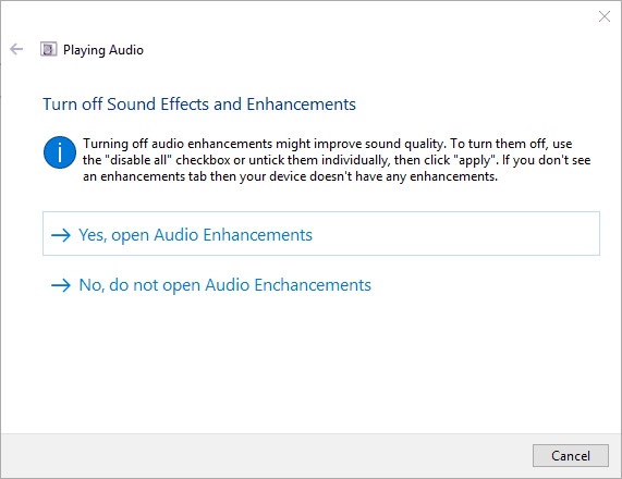 - Chọn tab Enhancements nếu không được mở theo mặc định.