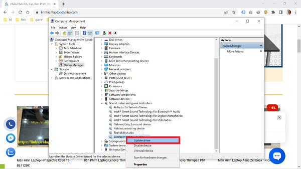 3. Click chuột phải vào thiết bị âm thanh đang sử dụng và chọn Update driver .