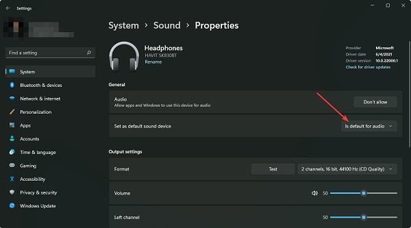 Nếu bạn có nhiều thiết bị phát lại, hãy kiểm tra xem thiết bị bạn cần bật âm thanh có phải là thiết bị mặc định không. Nếu chọn sai thiết bị, bạn sẽ không nghe thấy âm thanh có chất lượng như mong đợi.
