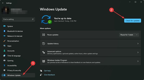 Truy cập Windows Update và nhấp vào Kiểm tra các bản cập nhật .