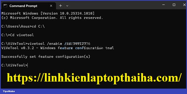 3. Bây giờ, gõ lệnh cd vivetool để chuyển sang thư mục chứa .