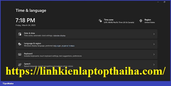 Nhấn Win + I để khởi chạy ứng dụng Cài đặt. Điều hướng đến tùy chọn Time & language. Nhấp vào tùy chọn Bàn phím.
