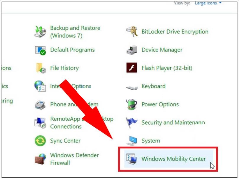 Bước 2: Điều hướng đến Windows Mobility Center tại Control Panel.