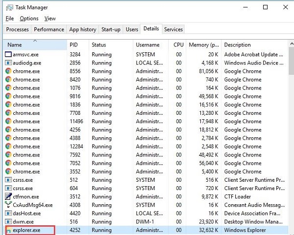 Nếu quá trình explorer.exe bị buộc phải tắt, sẽ gây ra màn hình đen chết chóc của máy tính xách tay HP. Nếu đúng như vậy, thì bạn cần bắt đầu quá trình explorer.exe.