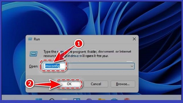 Bước 2: Gõ msconfig vào Runs => nhấn Enter.