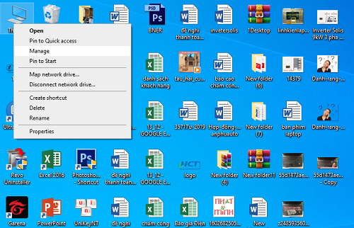 Bước 1: Bạn Click chuột phải vào This PC và chọn Manage .