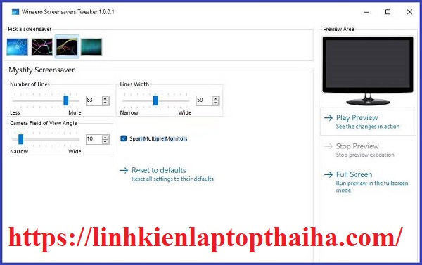 Tất cả các tab Mystify, Bubbles và Ribbons đều bao gồm các hộp kiểm Span Multiple Monitor. Cài đặt đó được bật theo mặc định để trình bảo vệ màn hình mở rộng trên nhiều màn hình. Bỏ chọn hộp kiểm đó sẽ hiển thị một trình bảo vệ màn hình đã đặt trên nhiều màn hình riêng biệt.