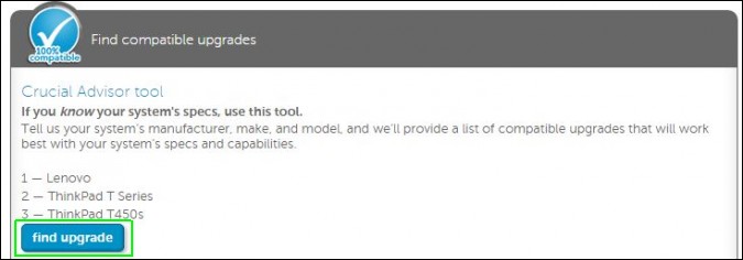 Cách tốt nhất để tìm hiểu xem laptop của bạn có thể nâng cấp được không thì hãy đem ra nơi sửa chữa laptop uy tín để hỏi hoặc sử dụng những phần bạn cần nâng cấp là với một công cụ cấu hình như Crucial Memory Advisor Tool. Hướng dẫn cách sử dụng: