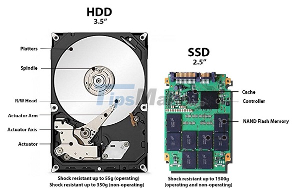 Bản chất ổ đĩa: HDD ghi và đọc dữ liệu bằng cách đọc đĩa, trong khi SSD ghi và đọc dữ liệu bằng đường điện.