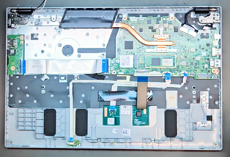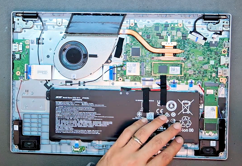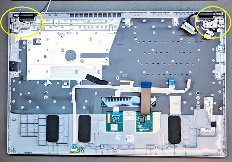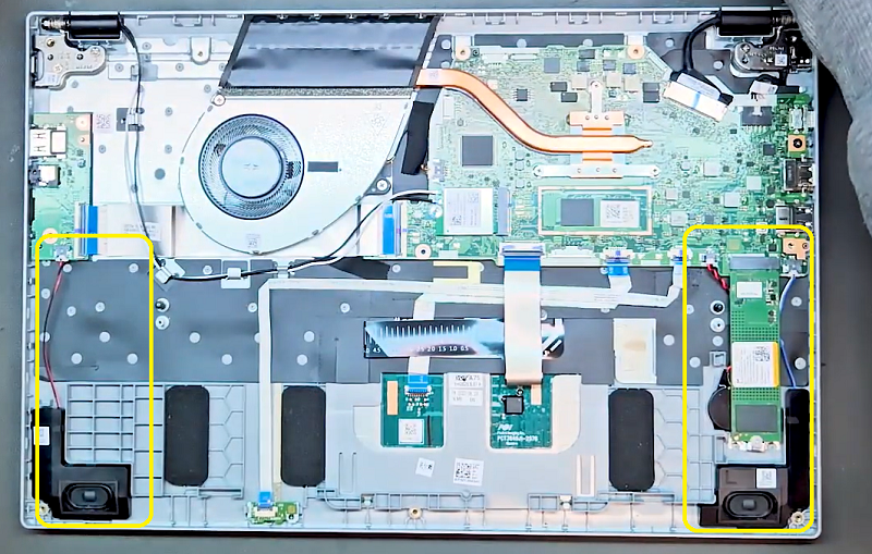 Bước 5: Sau khi tháo pin ra tiến hành tháo tiếp ổ cứng ssd và 2 bên loa tại vị trí đánh dấu trong ảnh.