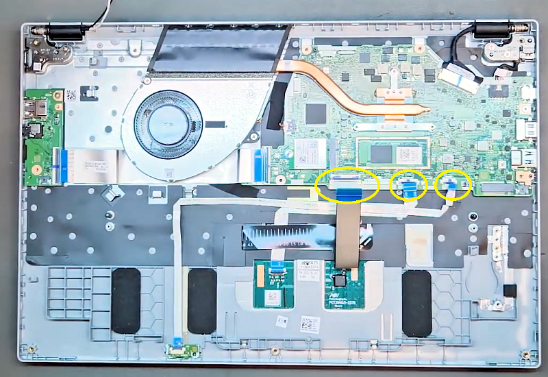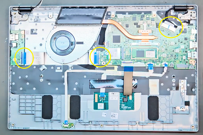 Bước 6: Tiếp đến cần tháo các đầu cáp đang gắn với bo mạch chủ tại các vị trí đánh dấu.