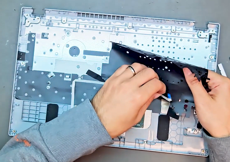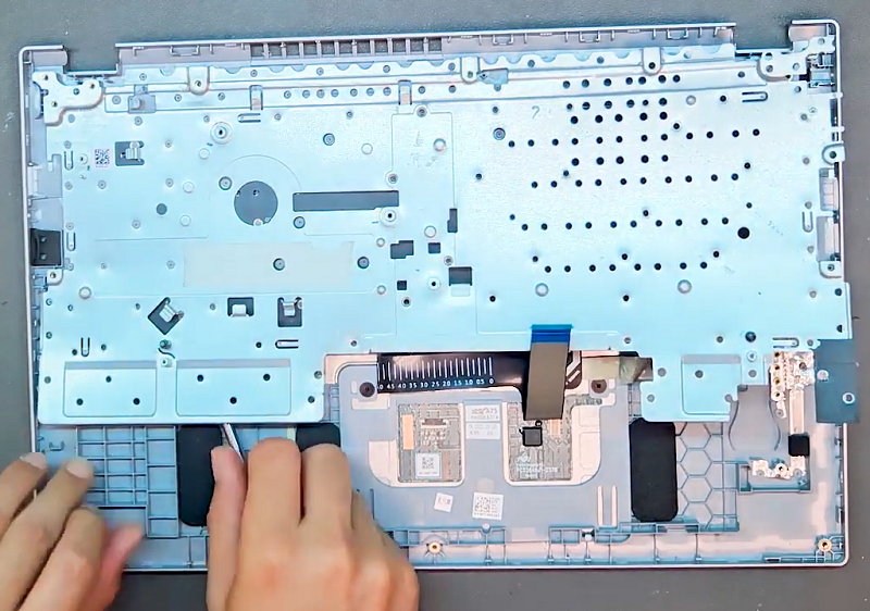 Bước 14: Sau khi cậy được tấm kim loại thì sẽ thấy phần bàn phím nằm phía bên dưới.
