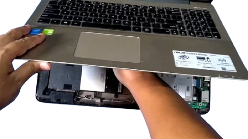 Bước 2: Mở lại laptop ra và tháo cụm mặt bàn phím ra.