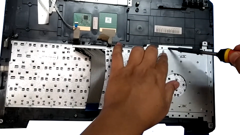 Bước 4: Tiếp tục cậy miếng kim loại bên trên bàn phím ra.