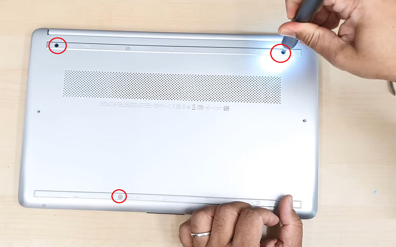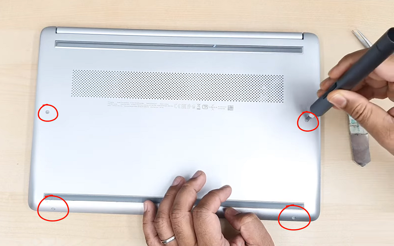 Bước 3: Tháo 2 lớp cao su ở mặt dưới laptop ra và tháo các con ốc ở phía dưới