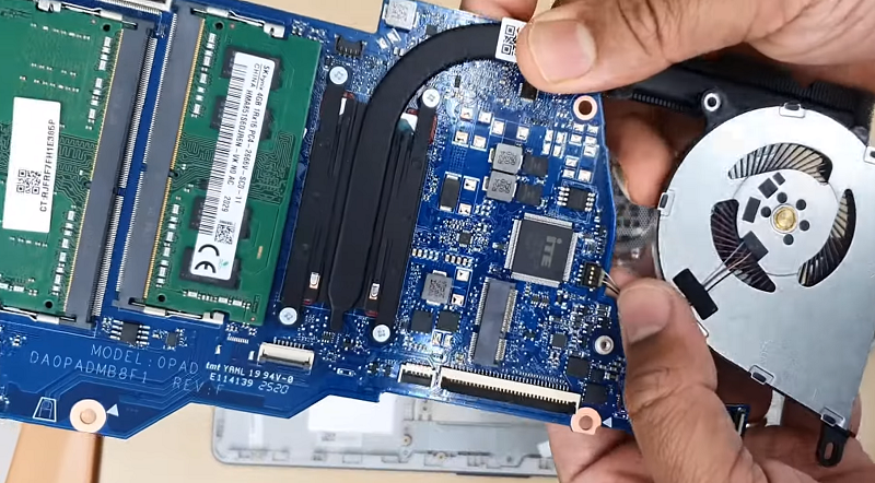 Bước 7: Sau đó tháo tiếp phần tản nhiệt, quạt và bo mạch chủ