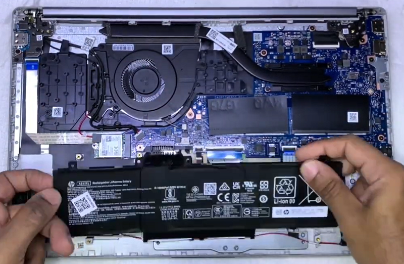 Bước 2: Tháo cáp pin và các con ốc cố định viên pin xung quanh pin và bỏ pin ra ngoài.