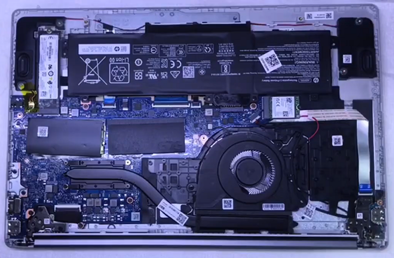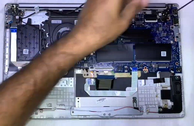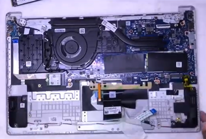 Bước 10: Lắp lại toàn bộ các lin kiện đã tháo ra trước đó như bo mạch, tản nhiệt và cụm màn hình trên theo đúng trình tự ngược lại lúc tháo ra.