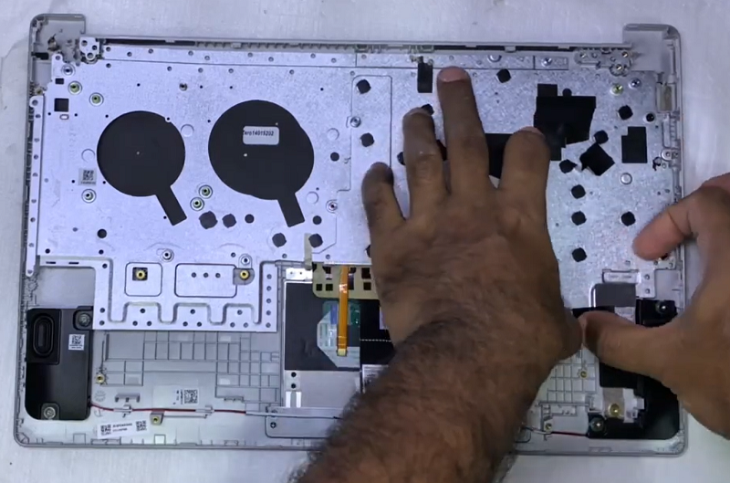 Bước 8: Thay bàn phím mới đã chuẩn bị trước đó vào vị trí và đặt lại tấm kim loại cố định bàn phím lên.