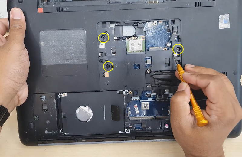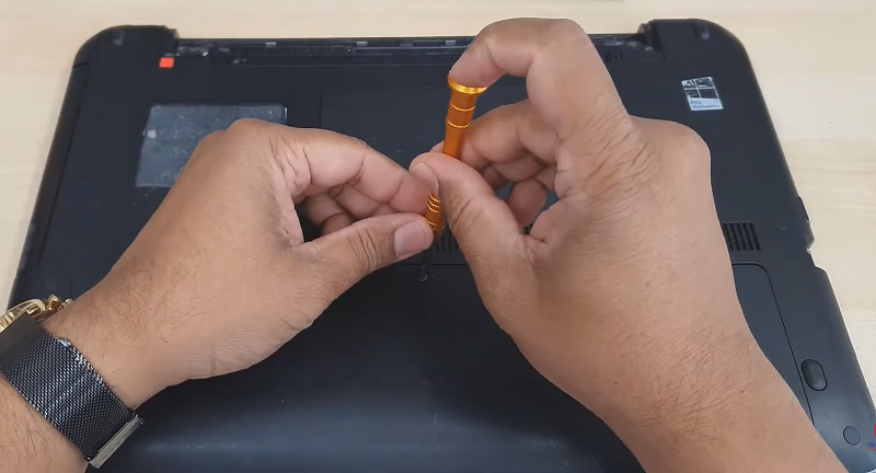 Bước 2: Tháo con ốc đang cố định nắp đáy laptop ra ngoài.