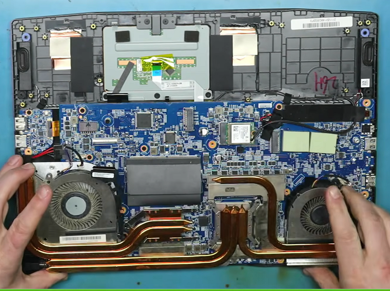 Bước 2: Tiếp theo cần tháo quạt và bộ phận tản nhiệt ra khỏi laptop.