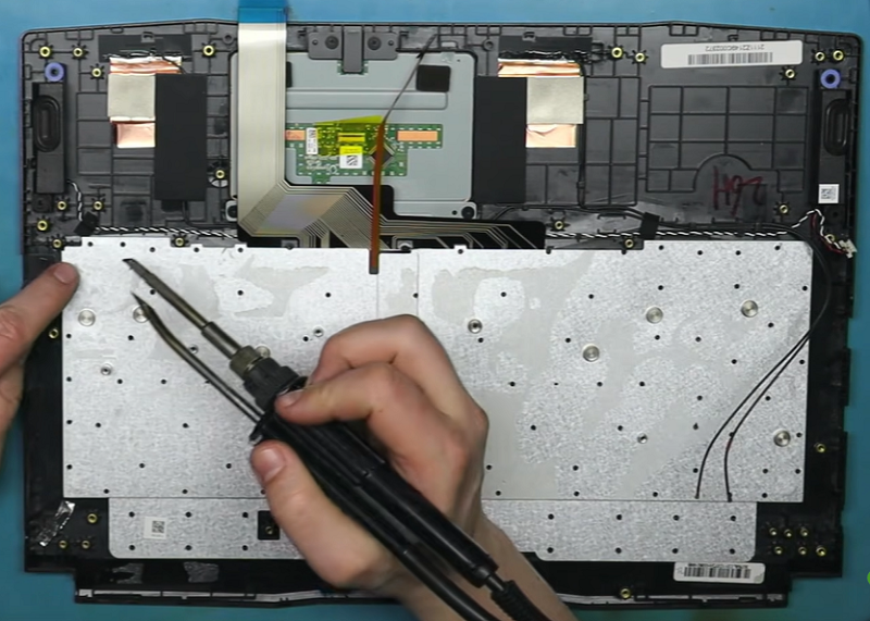 Bước 11: Hàn lại tấm kim loại như ban đầu bằng mỏ hàn nhiệt để bàn phím được cố định chắc chắn không bị ọp ẹp khi gõ.