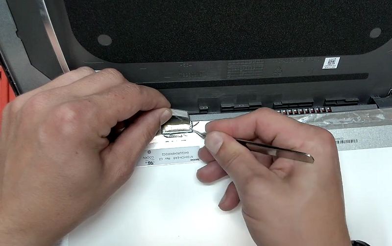 Bước 5: Hạ màn hình xuống và tiến hành tháo đầu cáp màn hình ra khỏi màn hình cũ.