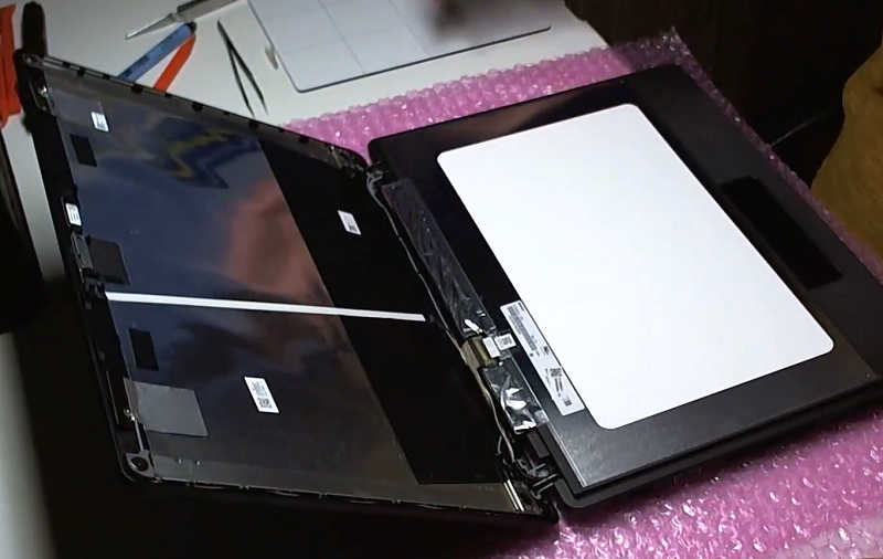 Bước 4: Tiến hành tháo màn hình ra khỏi laptop bằng cách kéo 2 tấm siu dán màn hình lên là màn hình laptop tự động tách ra.