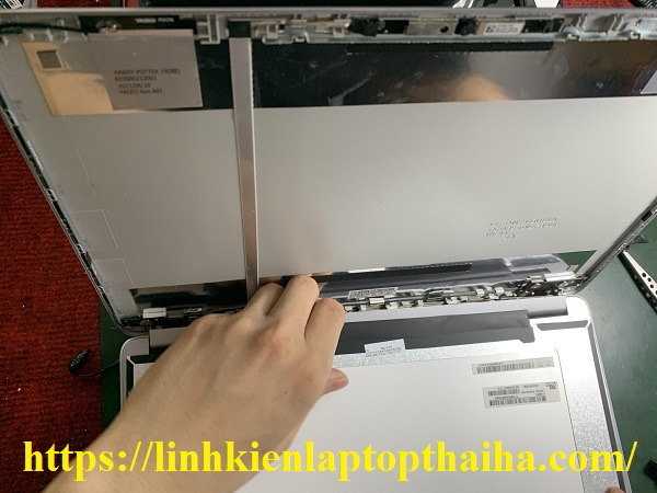 Bước 3: Gỡ màn hình laptop bị vỡ xuống và cáp màn hình ra khỏi laptop