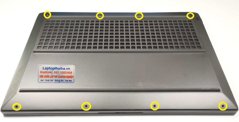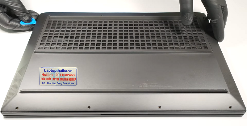 Bước 3 Tháo Nắp Dưới Laptop: Úp laptop xuống để thấy phần dưới của laptop có các ốc vít cố định. Sử dụng tua vít đầu 4 cạnh để tháo các ốc này ra khỏi vị trí đã được đánh dấu. Sau khi loại bỏ các ốc, hãy mở nắp dưới ra và đặt nó ở một nơi an toàn.