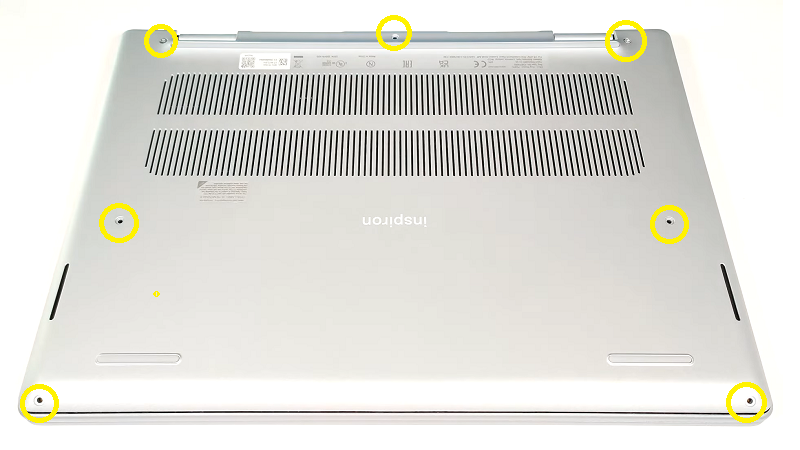 Bước 3: Úp laptop xuống và tháo hết các con ốc cố định mặt đáy laptop tại các vị trí đánh dấu.