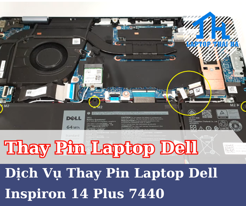 Dưới đây là hướng dẫn từng bước giúp bạn hiểu rõ quy trình thay pin laptop Dell Inspiron 14 Plus 7440 tại Laptop Thái Hà và quyết định liệu bạn nên tự mình thay thế pin laptop hay nên mang laptop tới các cửa hàng chuyên sửa chữa laptop để được hỗ trợ dịch vụ thay pin Dell Inspiron 14 Plus 7440 chuyên nghiệp.