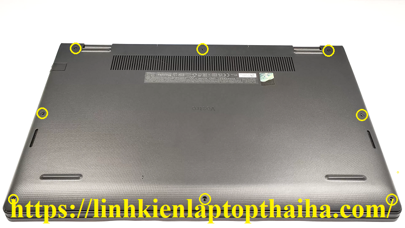 Bước 3: Úp laptop xuống và tháo hết các ốc cố định mặt đáy với laptop Dell Vostro 15 3535 được đánh dấu trong hình.