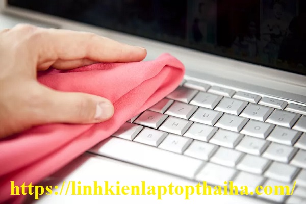 Bước 6: Cuối cùng, dùng khăn ẩm để lau các phím và touchpad.
