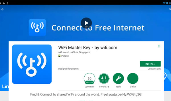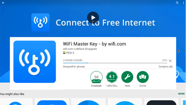 Bước 2: Mở xem chi tiết ứng dụng WiFi Master Key (WiFi Chìa khóa vạn năng) trên màn hình máy tính.