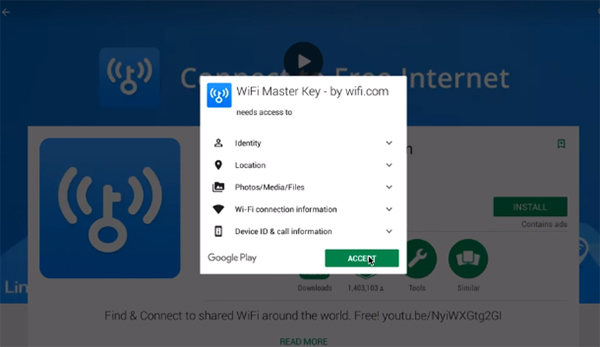 Bước 3: Nhấn cài đặt (Install) và tiếp tục các bước cho đến khi cài hoàn thành 100% như trên mobile là được. Sau đó, nhấn ACCEPT để chấp nhận và đồng ý cài đặt.
