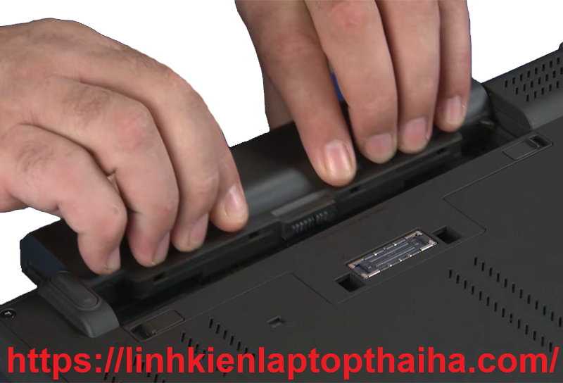 Bước 1: Úp laptop xuống và tháo viên pin laptop ra khỏi vị trí tránh trường hợp chập điện trong lúc thay bàn phím laptop.