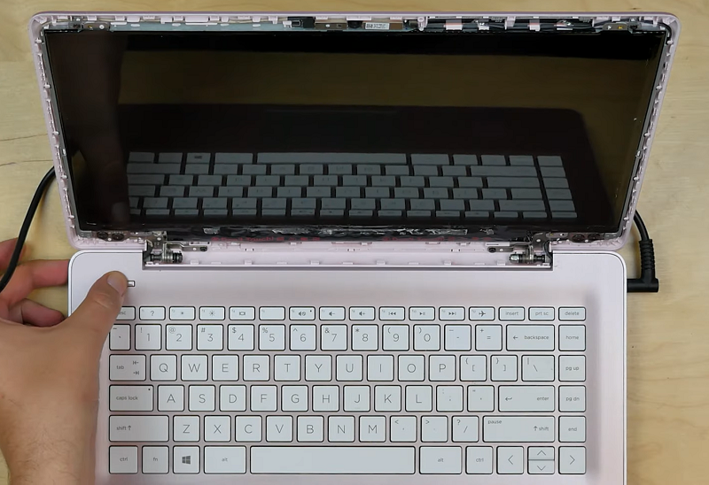 Bước 7: Bật laptop và kiểm tra: Kết nối laptop với nguồn điện, khởi động lại máy để kiểm tra màn hình mới hoạt động bình thường.