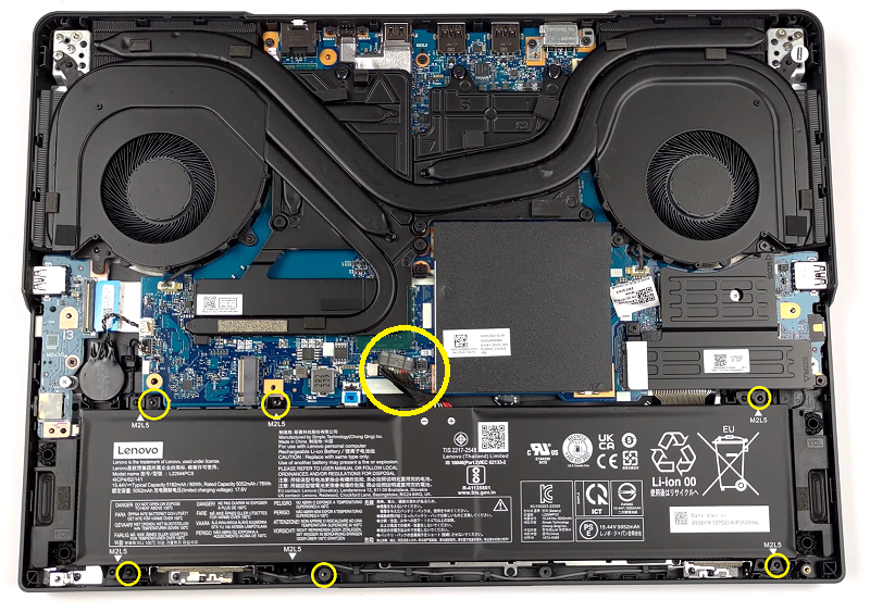 Bước 7: Lắp lại ổ cứng và đóng lại mặt đáy laptop và cố định lại các ốc vít. Bật laptop lên và kiểm tra xem pin laptop mới hoạt động ổn định không có vấn đề gì bất thường là đã thay thế pin laptop Lenovo Legion Pro 5 2023 thành công.