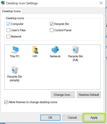 Thủ thuật này không chỉ giúp bạn dễ dàng xem mức ổ đĩa của máy tính của bạn, nó còn cho phép bạn mang các biểu tượng khác trở lại. Vì vậy, tin vui, người hâm mộ của Control Panel và mạng! Đây là cáchphục lại máy tính cho Windows 10 Desktop: