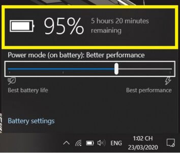 Thông thường, để đưa ra thời lượng sử dụng máy, Windows sẽ theo dõi hoạt động của máy trong vài phút trước đó rồi tính toán dựa trên dung lượng pin còn lại và đưa ra con số ước tính.