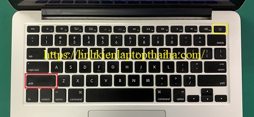 Sau đó, bật nguồn máy Mac của bạn bằng cách nhấn nút nguồn và giữ chặt phím Shift trên bàn phím.