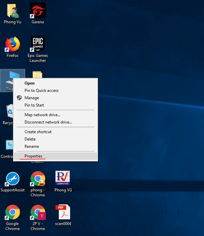 Bạn nhấp chuột phải vào biểu tượng This PC, sau đó chọn Properties: